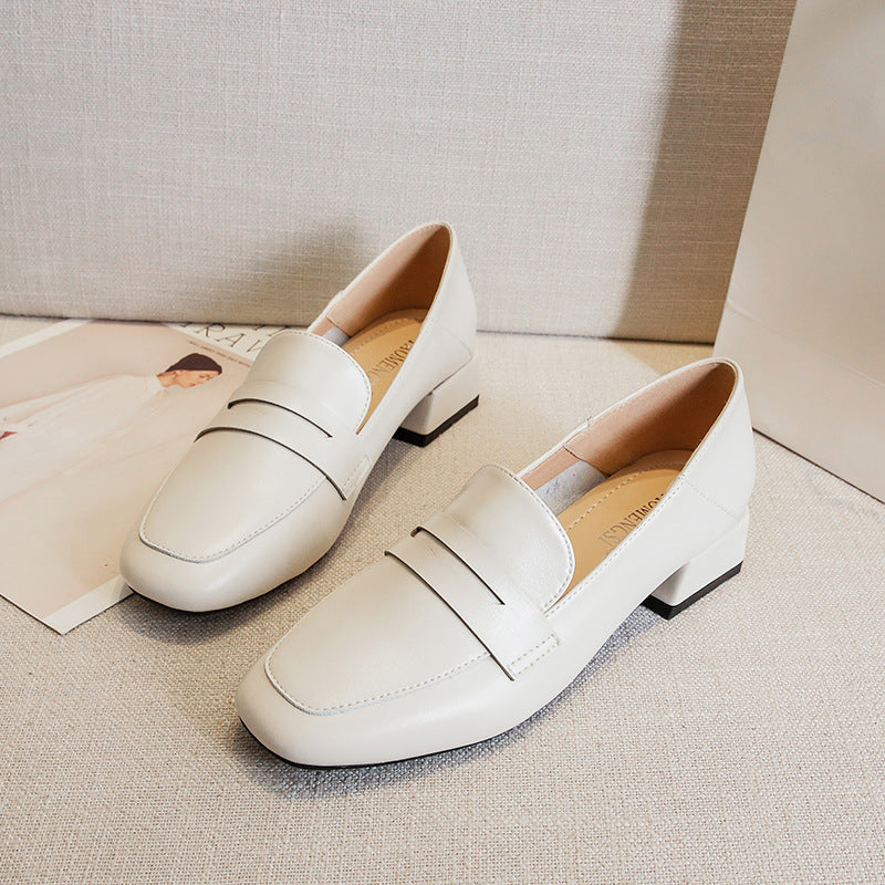 British Style Women's Leather Shoes 2025 High Heels Chunky Heel Square Toe Single Shoes Women's Outerwear Loafers