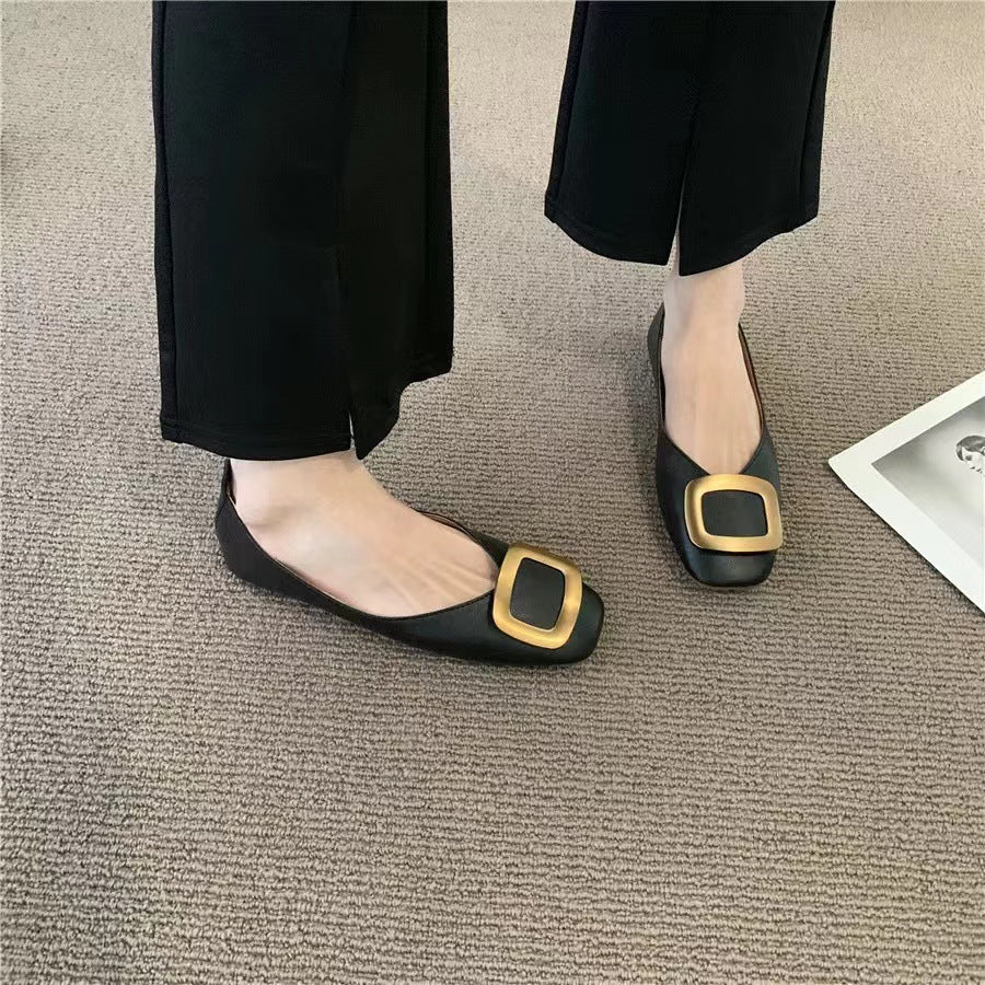 Women's Single Shoes, Buckle, Shallow Mouth, Square Toe, Slip-on, Plus Size, Flat Shoes, Casual and Versatile