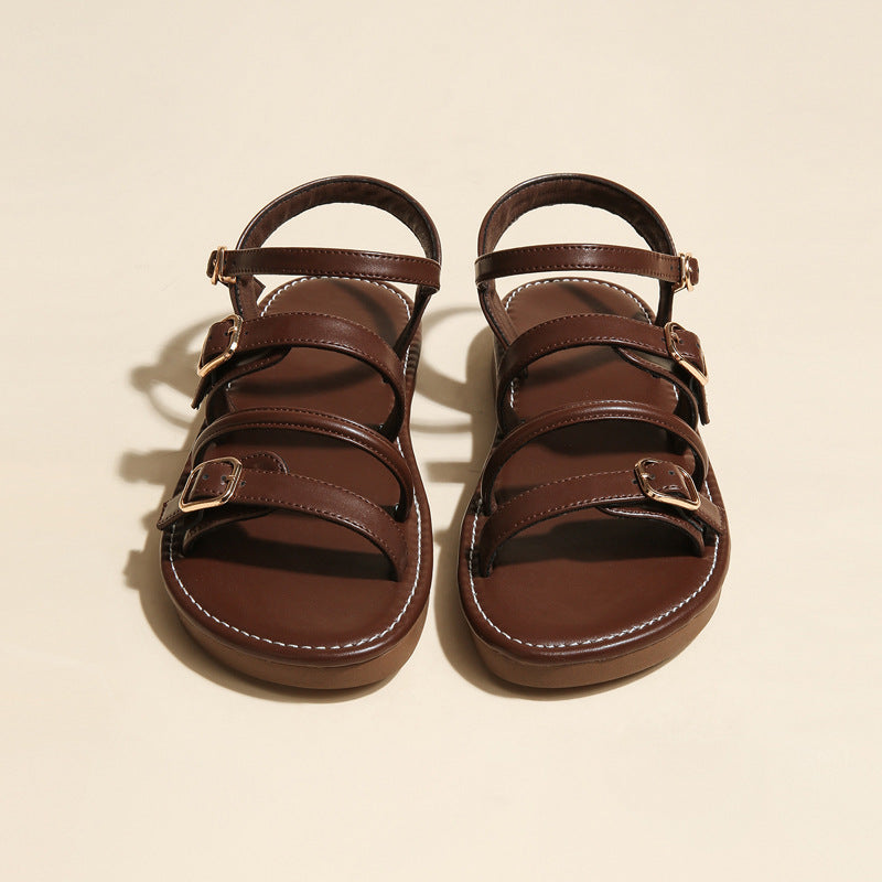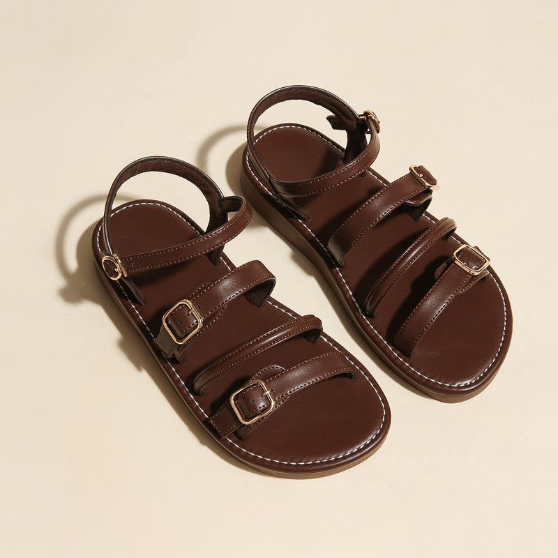 Soft sole and soft upper ~ Genuine leather single-strap Roman sandals, 2024 summer new style, flat retro leather buckle sandals for women.
